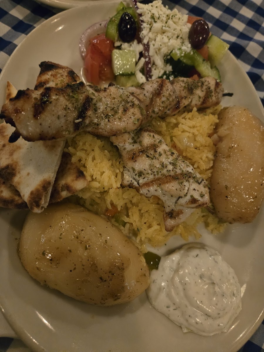 “ Food was delicious! The lamb souvlaki was so juicy and everything that came with it was so flavorful. Best baklava I’ve ever had! They also have a great patio! We will be back ”